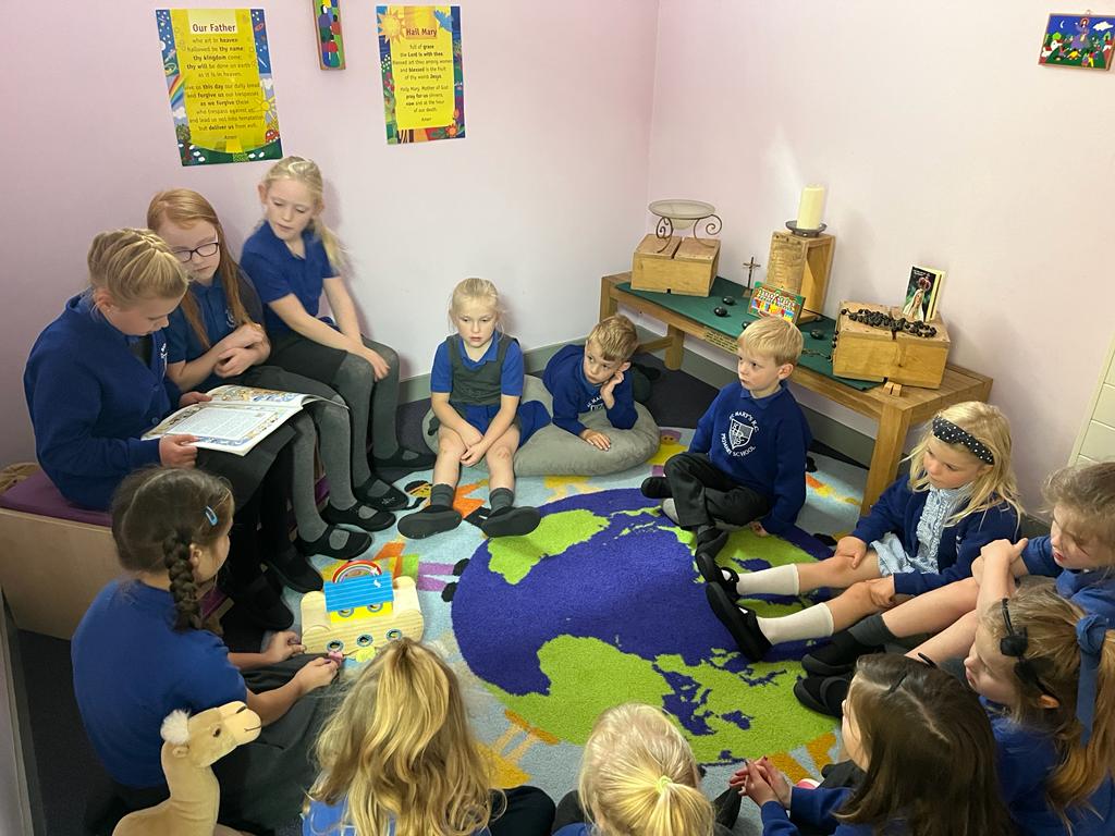 Each child takes part in a daily act of worship and formal prayers are used to open and close the school day and before lunch. On Mondays we share a Statement of the Week which encourages us all to live out the gospel values in our daily lives. We look forward to our Tuesday afternoon liturgies, which are are usually centred around national celebrations and events, British and Catholic values. On Wednesdays the children plan and lead a liturgy using Lectio Divinia resources. On Thursdays our liturgy is about ‘Global Classrooms’ and we sing hymns together linked to the liturgical calendar.